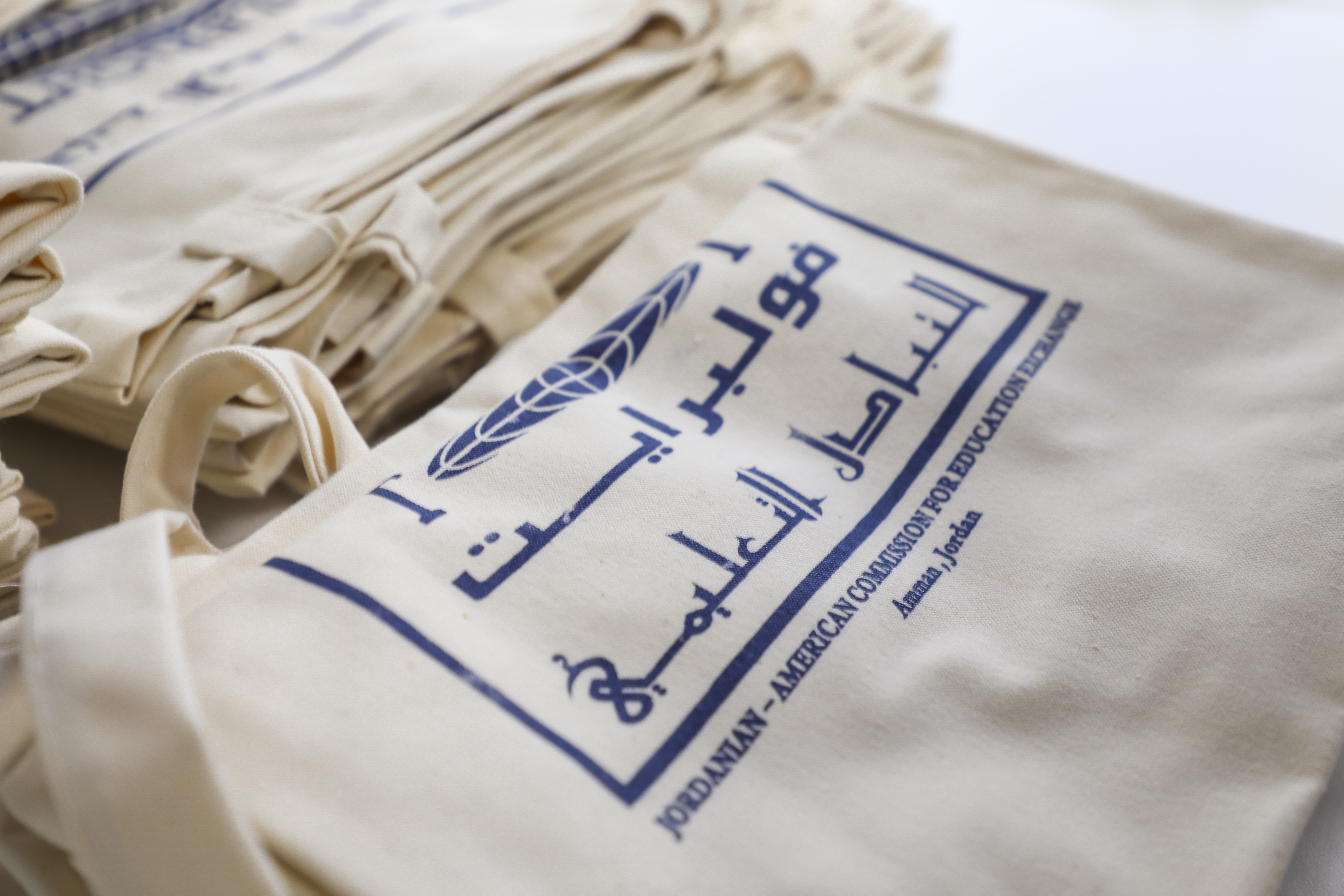 Earlier this summer, and as part of the 75th Anniversary celebrations of The Fulbright Program worldwide, Fulbright Jordan carried a workshop in collaboration with women-led and social enterprise Teenah. The workshop involved Jordanian and American alumni from different programs and cohorts who volunteered to upcycle old branded Fulbright t-shirts and tote bags which were later donated ahead of Eid celebrations in collaboration with the local charity organization - Ahed Group. The objective of this workshop was to strengthen the role of Fulbright alumni in their society to promote social and sustainable responsibility.